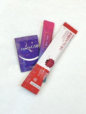 常備薬やパウダーを入れる巾着。スタバの巾着を集めるのが大好き♡