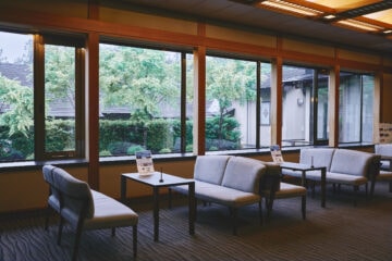 自然のやさしい静寂に包まれながら風情を感じる館内でくつろぎの時間を過ごせる