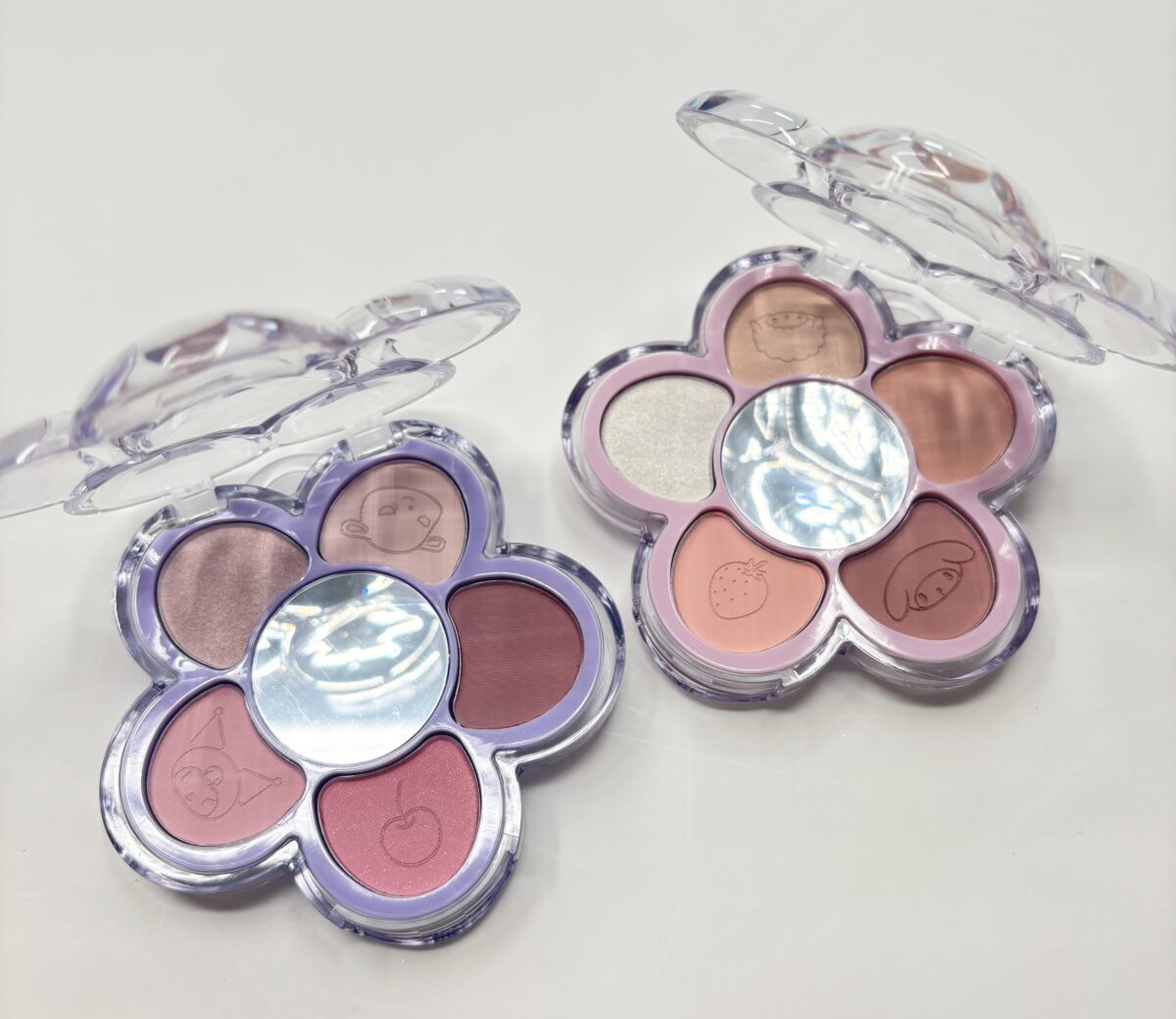 K・M:手のひらサイズで持ち運びにもいいし、真ん中の部分はミラーになっているからお直しもコレひとつでできちゃうよ!アイシャドウにマイメロディやクロミが刻印されているから可愛くて使うのがもったいないっていう人が続出しそう(笑)。