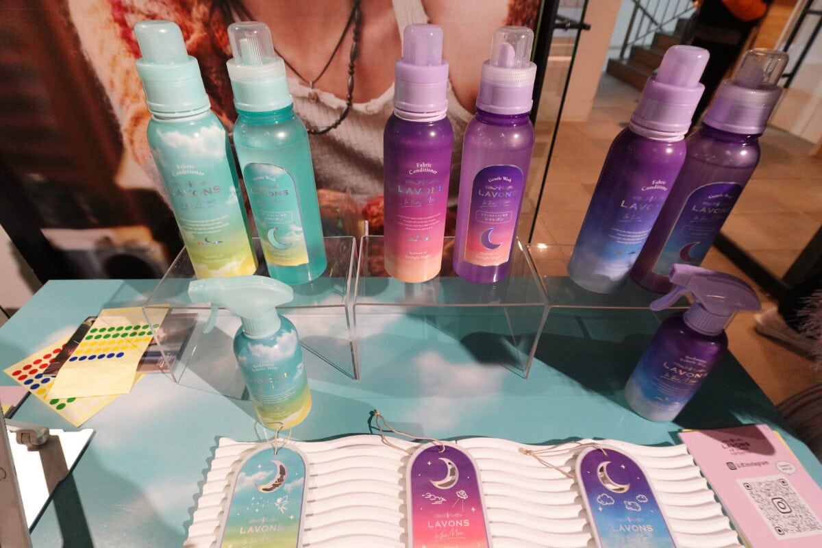 ラボン トゥザムーンの「グリーンヘブン」「トワイライトマジック」「ノクターナルブルー」の3種類の香りを体験できるブースも展開。