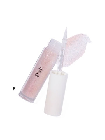 Aのaでまぶた中央をひと刷毛。下まぶたはチップを使用し、bのラメをオン。眉毛はcでピンクに。涙袋にはBを使用。指にたっぷり取って、目尻にトントンと塗り、余ったラメは目頭にチョンチョン塗り。マスカラCを上まつ毛はひと塗り、下まつ毛はマスカラが乾く前にピンセットでまつ毛同士をくっつけて束感を出す。