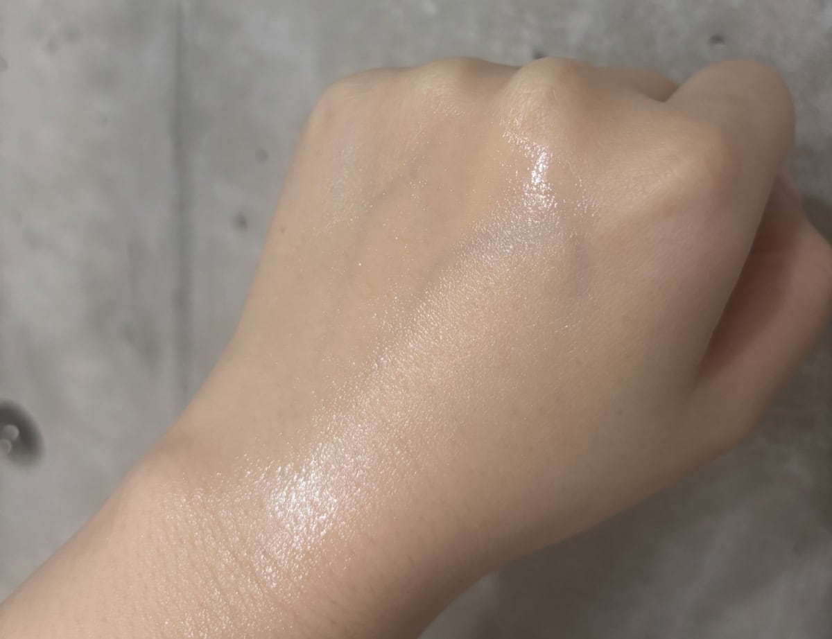 K・M:見た目だけで判断するととんでもなくキラキラになってしまうんじゃないかって思うんだけど、実際はナチュラルにツヤ肌に見せてくれるよ!ホハバオイルなどの植物由来成分が潤いをキープしてくれるし、ラメが繊細だからボディ用ハイライターとして使うのもオススメ♡少し甘めなラズベリーバニラの香りにも癒やされるよ!