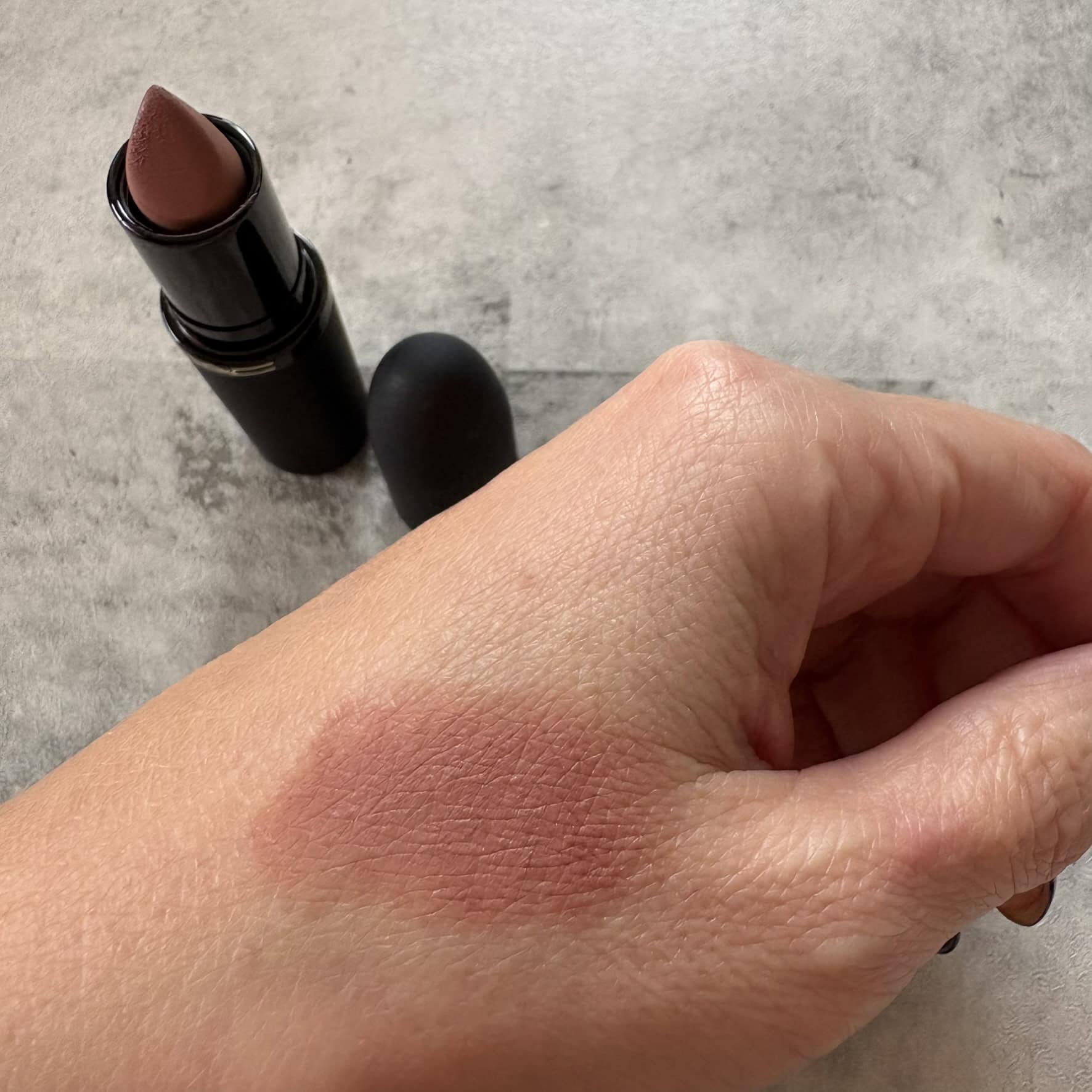 M·A·C パウダー キス ヘイジー マット リップスティック「テイケン」の色味と質感アップ